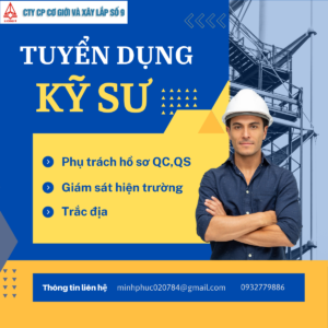 Công ty Cổ phần Cơ giới và Xây lắp số 9 cần tuyển dụng các vị trí cho Dự án làm việc tại Lào – cách cửa khẩu Nam Giang- Quảng Nam 20Km.