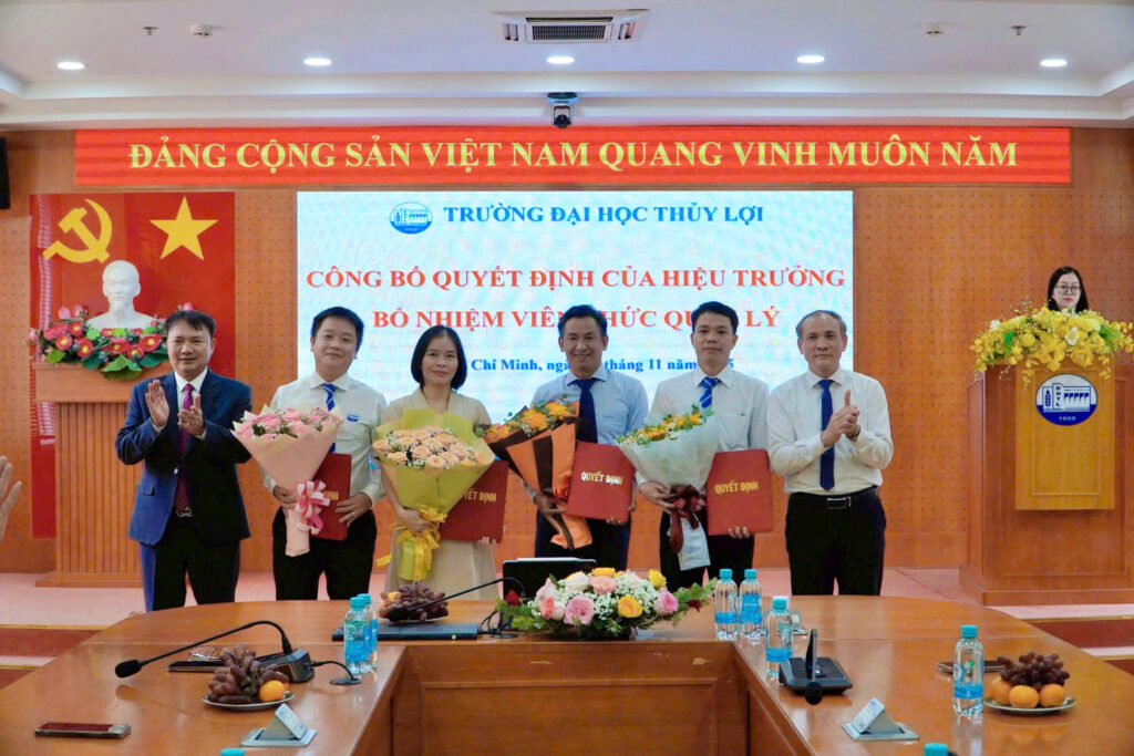 Theo Quyết định của Hiệu trưởng Trường Đại học Thủy lợi, Nhà trường đã công bố và trao các Quyết định bổ nhiệm viên chức quản lý tại Phân hiệu, gồm: TS. Phạm Ngọc Thịnh – Phó Trưởng Bộ môn Kỹ thuật công trình được bổ nhiệm giữ chức vụ Trưởng phòng Quản lý đào tạo; PGS.TS Lê Trung Thành – Trưởng phòng Quản lý đào tạo được bổ nhiệm giữ chức vụ Phó Trưởng Bộ môn Kỹ thuật công trình; ThS. Phùng Thị Thúy Hà được bổ nhiệm giữ chức vụ Trưởng phòng Khảo thí và Đảm bảo chất lượng; TS. Ngô Văn Linh được bổ nhiệm giữ chức vụ Phó Trưởng phòng Quản lý đào tạo. Đây là những cán bộ có năng lực, kinh nghiệm và tinh thần trách nhiệm cao, được tập thể tín nhiệm, kỳ vọng sẽ tiếp tục phát huy năng lực chuyên môn, tinh thần đổi mới và sáng tạo, góp phần nâng cao hiệu quả công tác đào tạo và quản lý tại Phân hiệu.