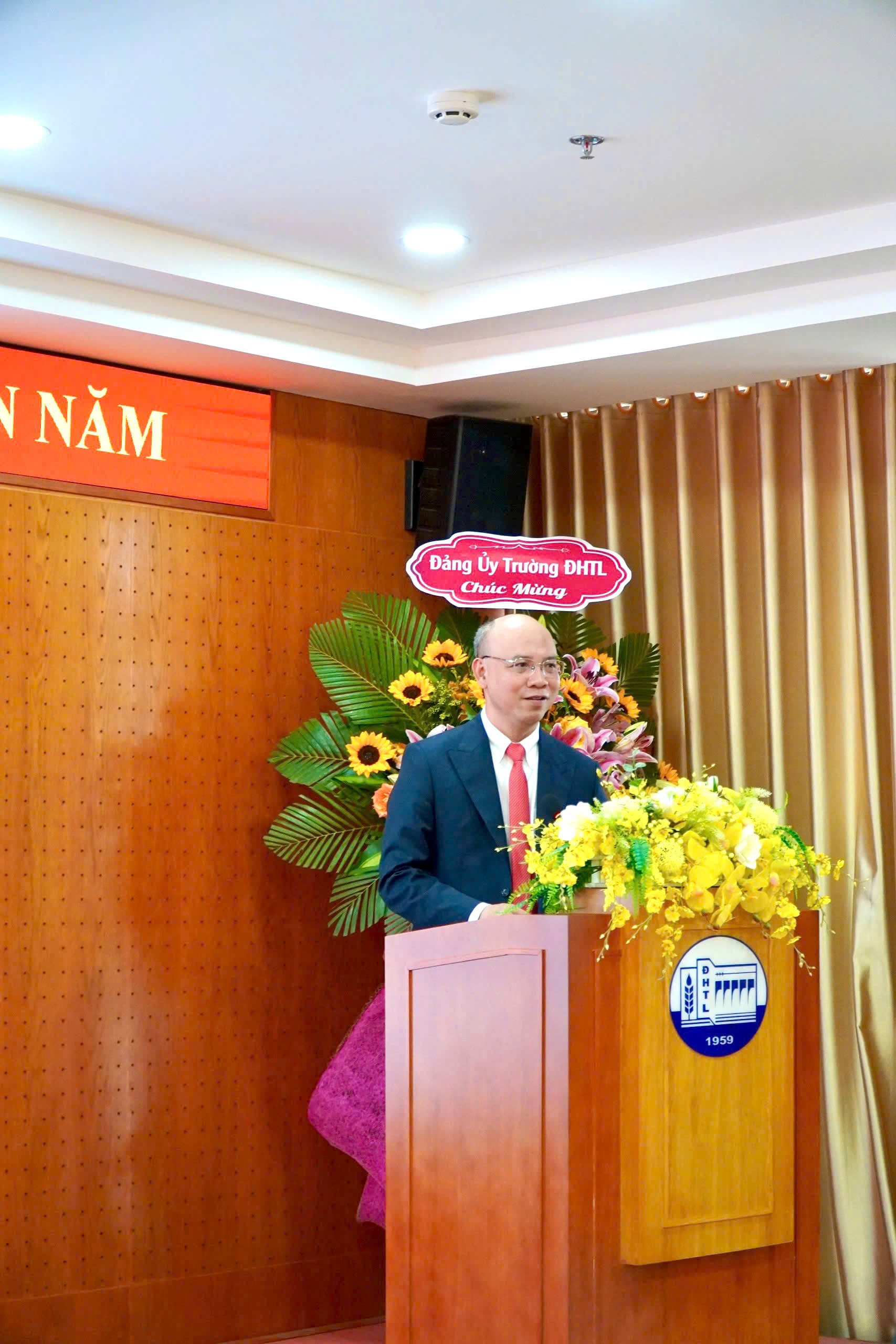Đồng chí Nguyễn Hữu Huế – Bí thư Đảng ủy, Chủ tịch Hội đồng Trường phát biểu chỉ đạo đại hội