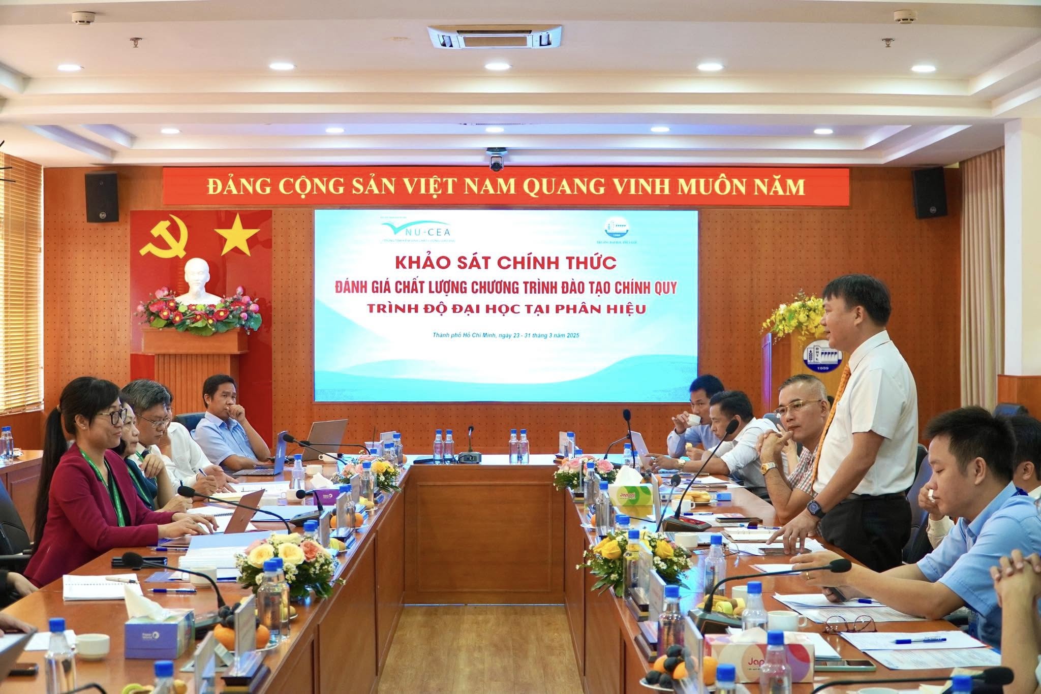 Ngày 23/3/2025, Phân hiệu Trường Đại học Thủy lợi (TLS) vinh dự đón tiếp Đoàn đánh giá ngoài từ Trung tâm Kiểm định Chất lượng Giáo dục – Đại học Quốc gia Hà Nội (VNU – CEA) trong khuôn khổ khảo sát chính thức, nhằm đánh giá chất lượng các chương trình đào tạo chính quy trình độ đại học tại Phân hiệu. Chương trình đánh giá chất lượng lần này tập trung vào 04 ngành đào tạo: Kỹ thuật xây dựng công trình thủy, Kỹ thuật cấp thoát nước, Kế toán và Quản trị kinh doanh.