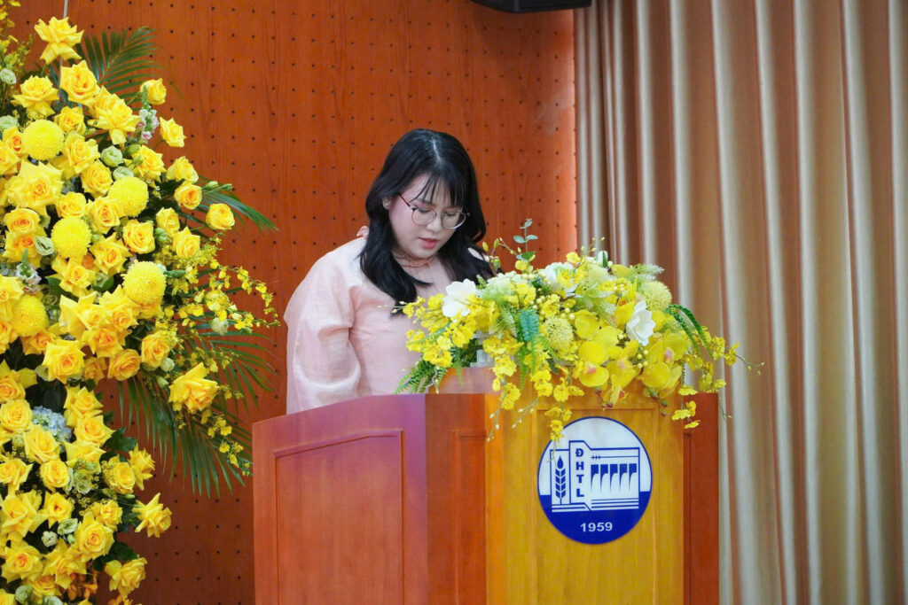 TS. Lê Xuân Bảo – Phó Giám đốc Phân hiệu đại diện lãnh đạo Nhà trường phát biểu, ôn lại truyền thống 80 năm xây dựng và phát triển Ngành Thủy lợi