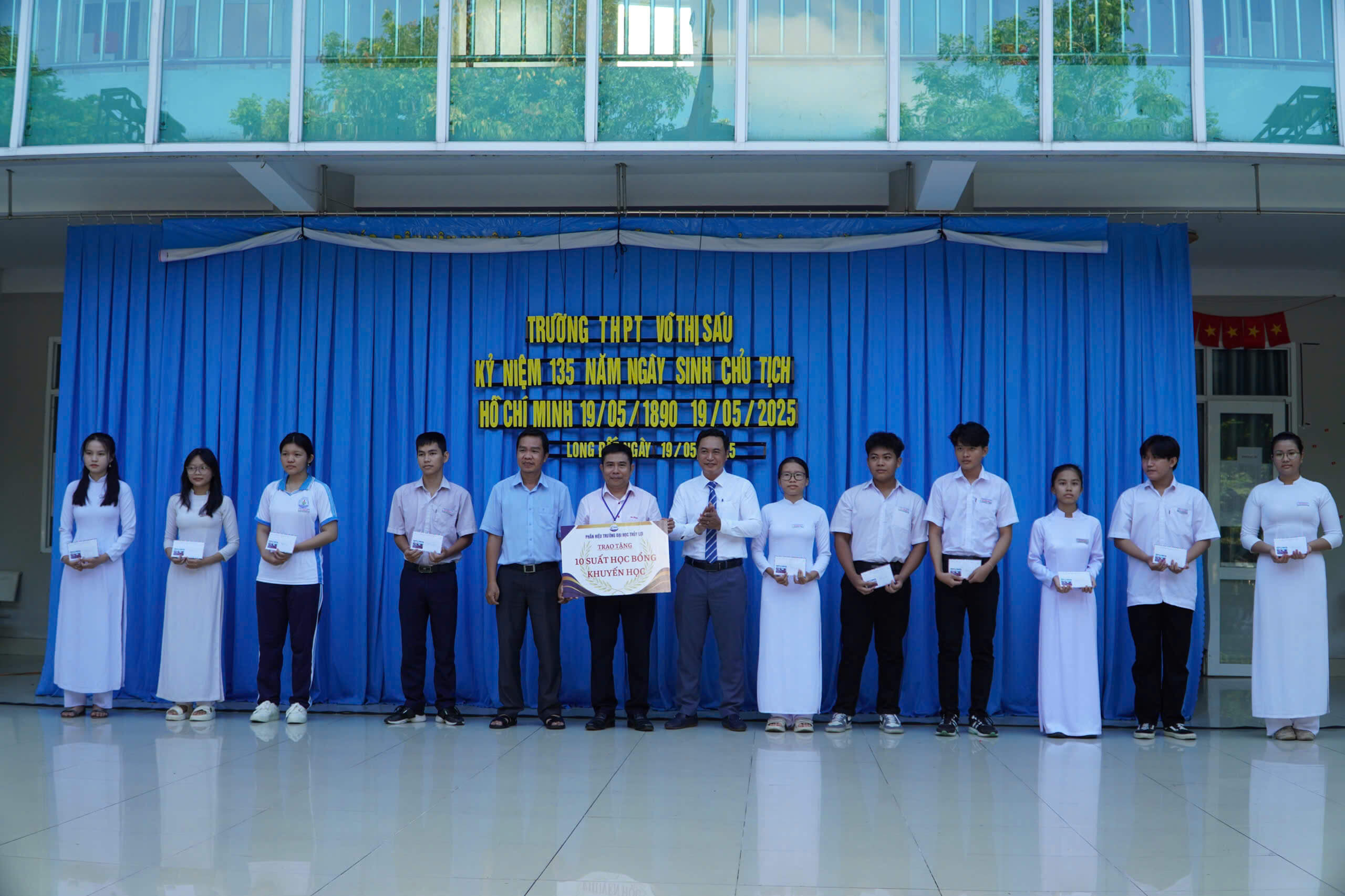 Dịp này, Phân hiệu Trường Đại học Thủy lợi cũng đã trao tặng 10 suất học bổng khuyến học cho học sinh có hoàn cảnh khó khăn, nỗ lực vươn lên trong học tập. Đây là hoạt động mang ý nghĩa nhân văn sâu sắc, nhằm tiếp thêm động lực cho các em học sinh trên hành trình chinh phục ước mơ vào giảng đường đại học.