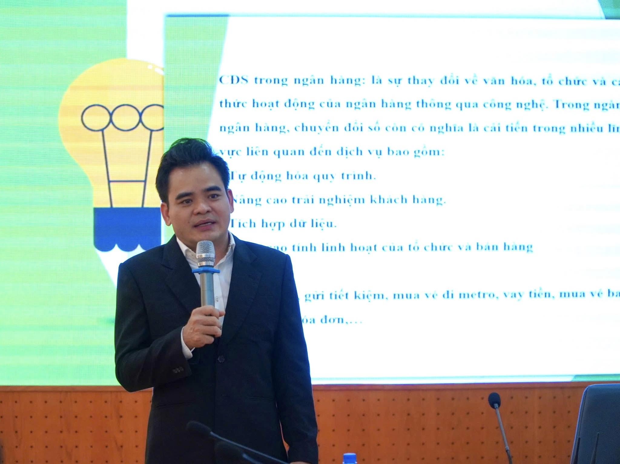Hội thảo vinh dự có sự tham gia của Diễn giả Bùi Thanh Dâng, Giám đốc PGD Ngân Hàng Số Vikki Nguyễn Thị Thập, người đã mang đến những góc nhìn sâu sắc về ứng dụng công nghệ số trong lĩnh vực tài chính – ngân hàng.