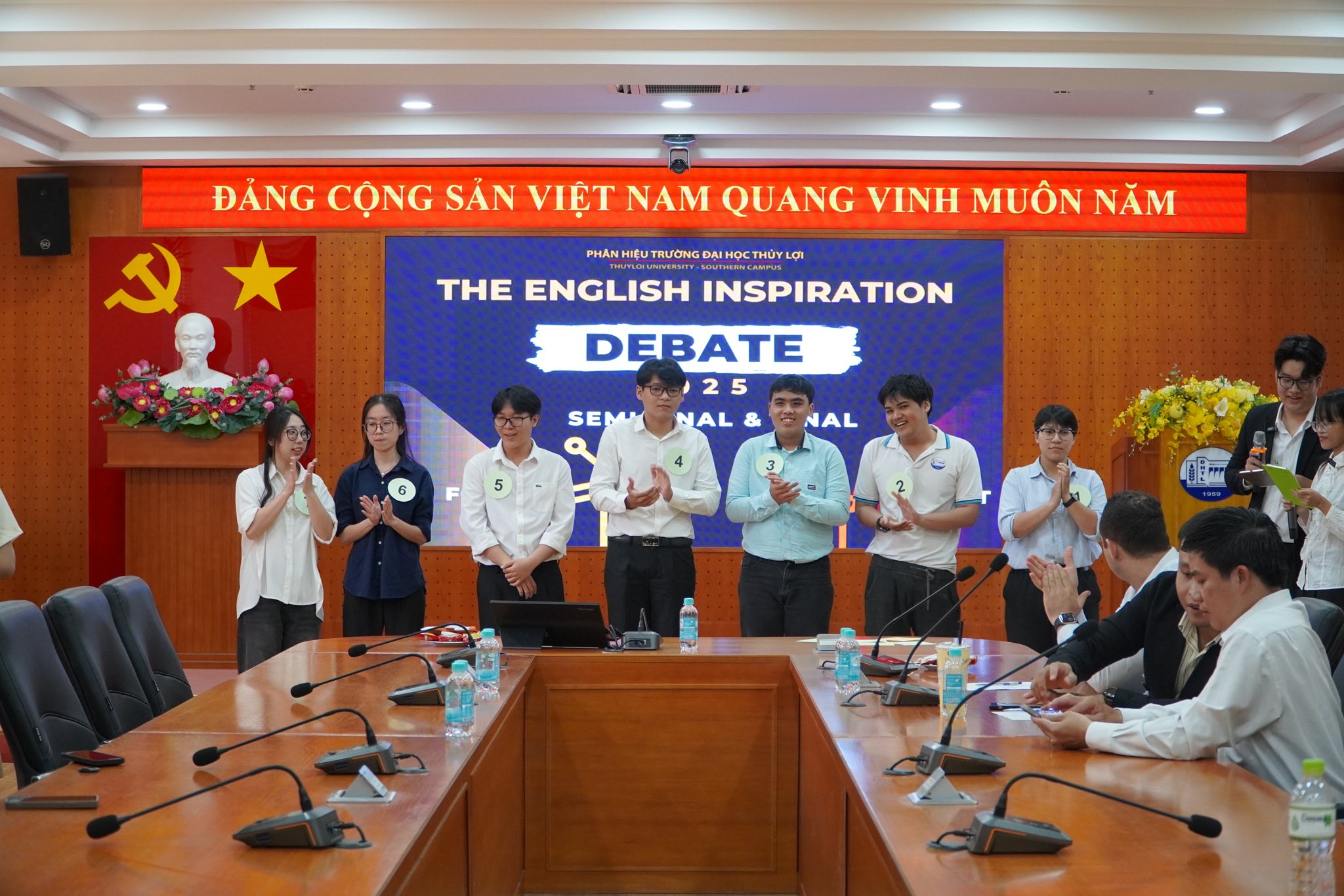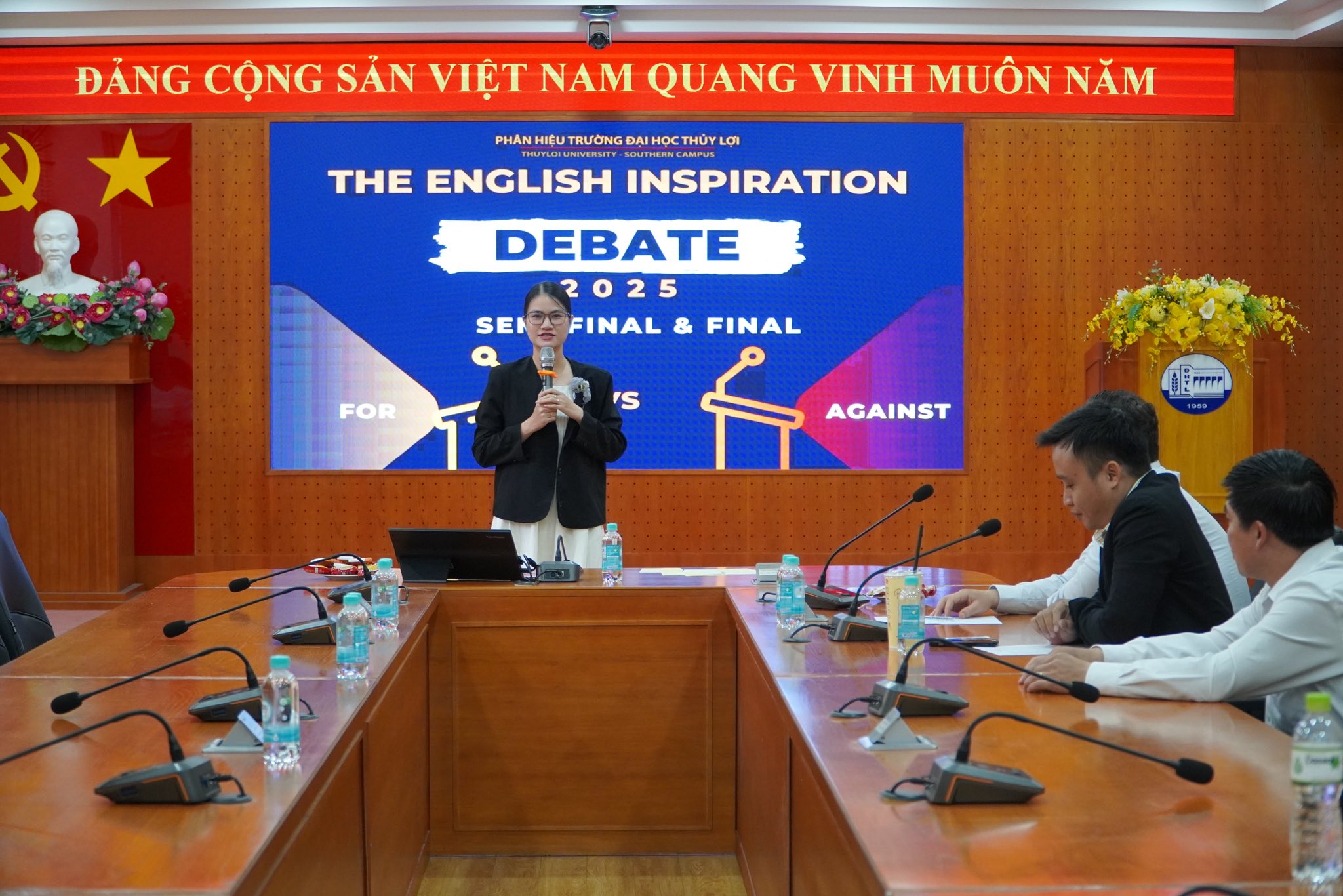 Ngày 29/5/2025, tại Phân hiệu Trường Đại học Thủy lợi đã diễn ra Vòng Bán kết và Chung kết cuộc thi tranh biện tiếng Anh “The English Inspiration 2025”. Cuộc thi do Bộ môn Khoa học Cơ bản tổ chức với mục tiêu tạo dựng một sân chơi học thuật lành mạnh, thúc đẩy tư duy phản biện, nâng cao kỹ năng diễn đạt, hùng biện và sử dụng tiếng Anh cho sinh viên toàn trường.