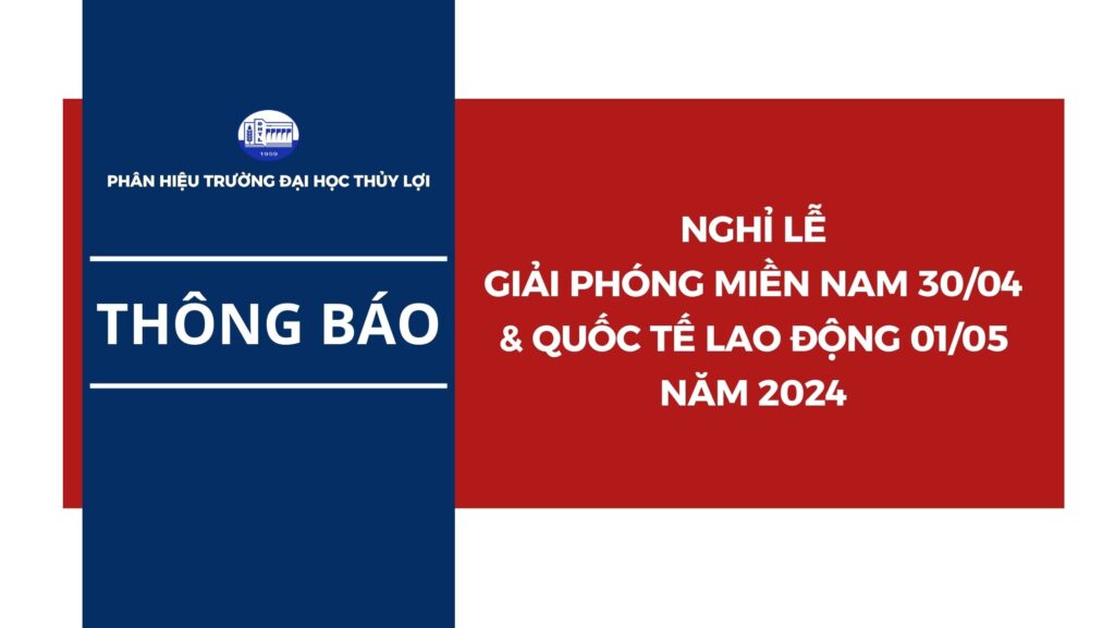 Phân hiệu Trường Đại học Thuỷ lợi thông báo lịch nghỉ Lễ 30/4 & Quốc tế lao động 1/5 năm…