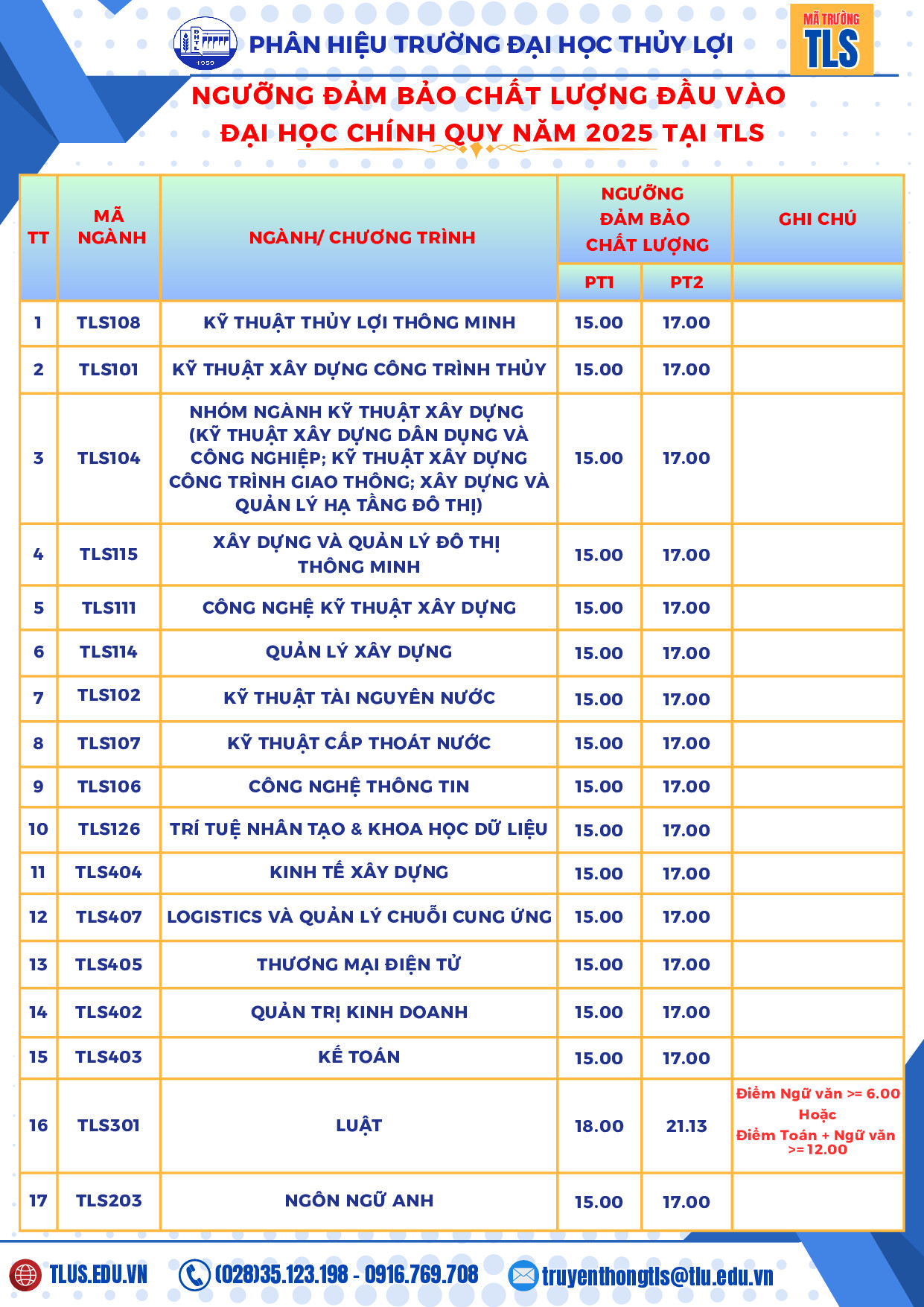 Phân hiệu Trường Đại học Thủy lợi chính thức công bố ngưỡng đảm bảo chất lượng đầu vào đại học…