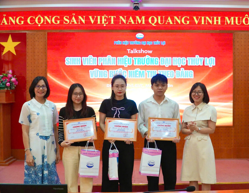Trong khuôn khổ chương trình talkshow “Sinh viên Phân hiệu Trường Đại học Thủy lợi vững bước niềm tin theo Đảng”, Phân hiệu Trường Đại học Thủy lợi đã tổ chức tuyên dương và trao thưởng cho TOP 3 sinh viên đạt thành tích xuất sắc trong Cuộc thi trực tuyến cùng chủ đề.
